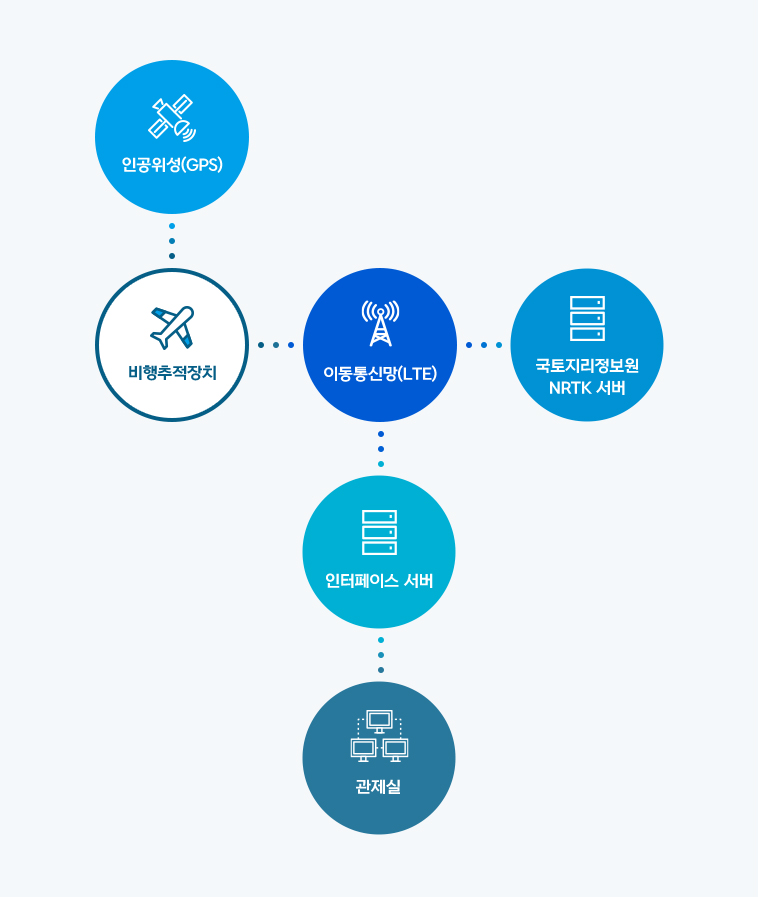 LTE통신망을 통하여 지상 관제실에 드론정보를 전달해주는 시스템입니다.